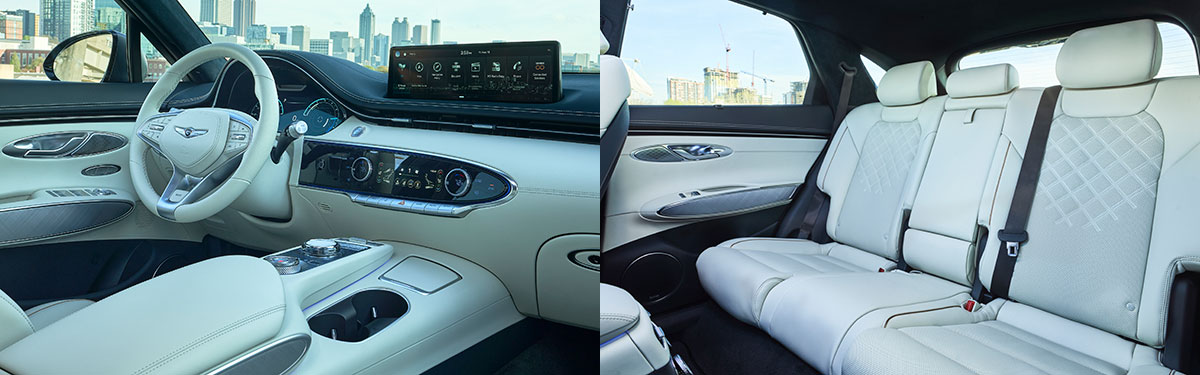 With a 113-inch wheelbase, the GV70 is one of the larger compact crossovers -- bordering on midsize, in fact. Front seats are firmly bolstered and provide ample back and thigh support. Head and leg room are quite good. Outward visibility is good forward but blocked to the rear and sides by thick pillars and a smallish back window. The rear seats are inviting and nicely trimmed. Head room is good, but knee room grows tight if the front seats are all the way back.